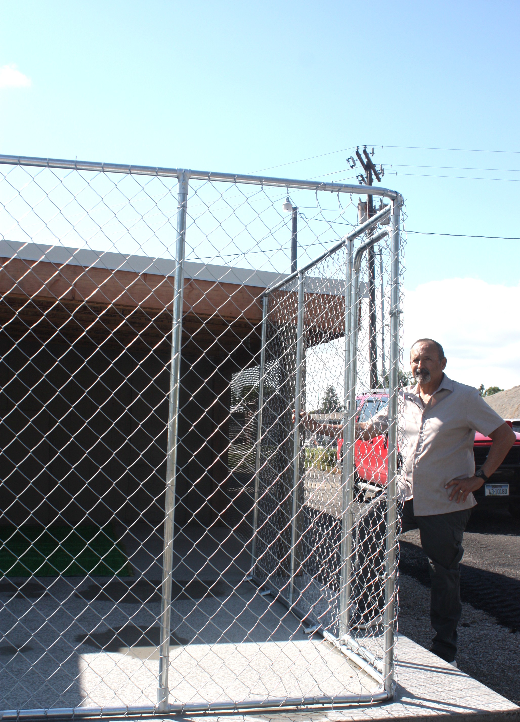 Image 1 Caption: Compliance Officer (Dog Catcher) John Stenzel shows off the new outside exercise area for dogs held in the pound.