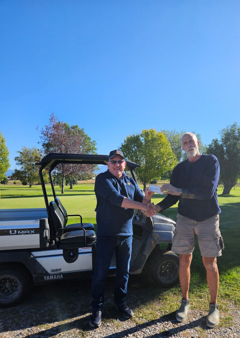 Old Baldy Golf Club’s utility cart has been on its last legs for some time. Recently, the nonprofit group received the okay to purchase a new one, according to Rotary President Doug Sitton, who presented a check for $7,500 to Club President and Maintenance Superintendent Cory Bakkum.