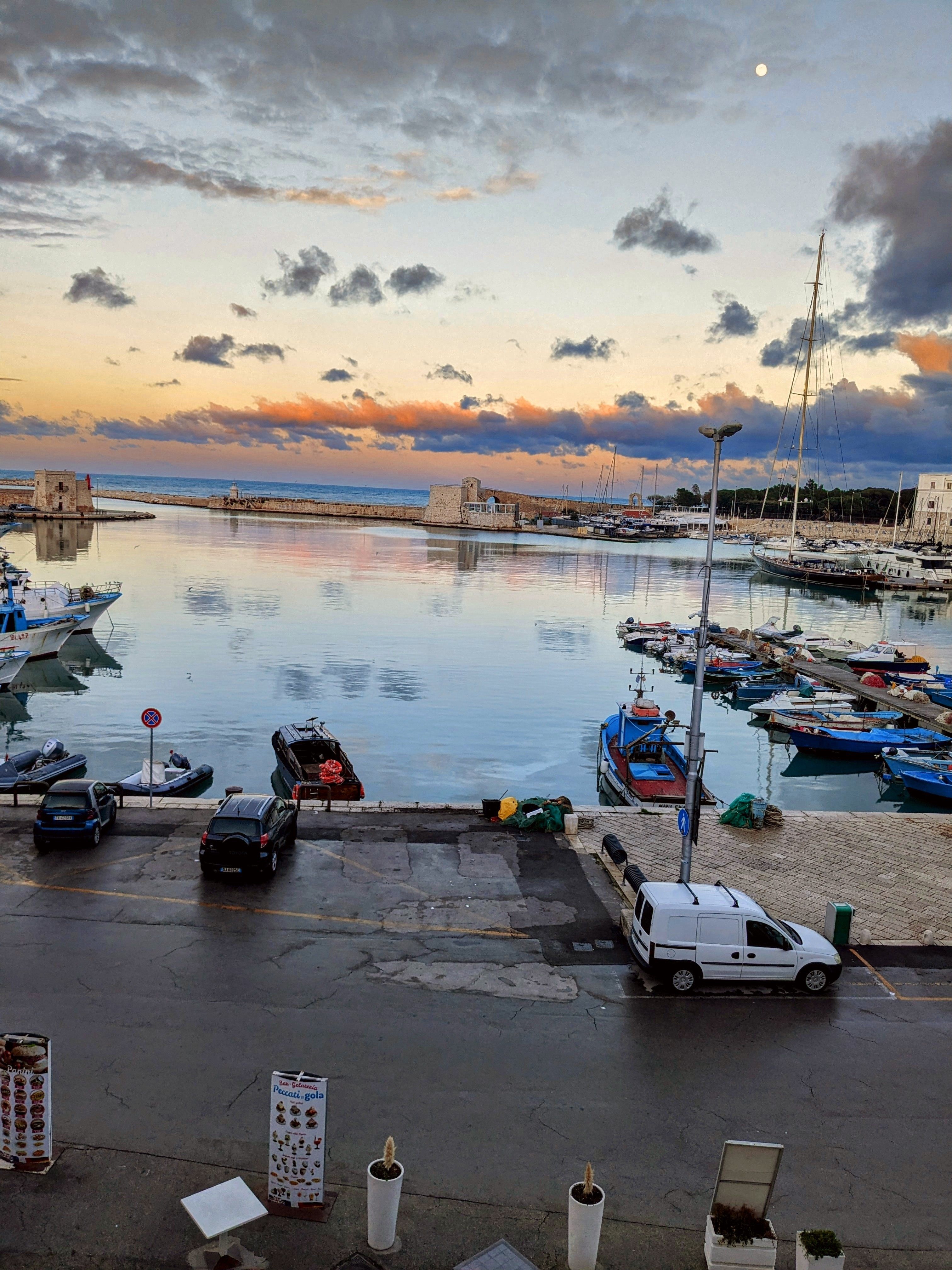 In the afternoon, we have several places we can walk and enjoy the beauty of this area of Italy. We can walk to the Villa Communale (large city park), the Jewish District to see the streets lined with flower-draped balconies, the park in the center of town to visit with the local people or to the beautiful white-stone Cathedral. We can walk to the port to watch the fishermen unload their catch of a variety of fish.