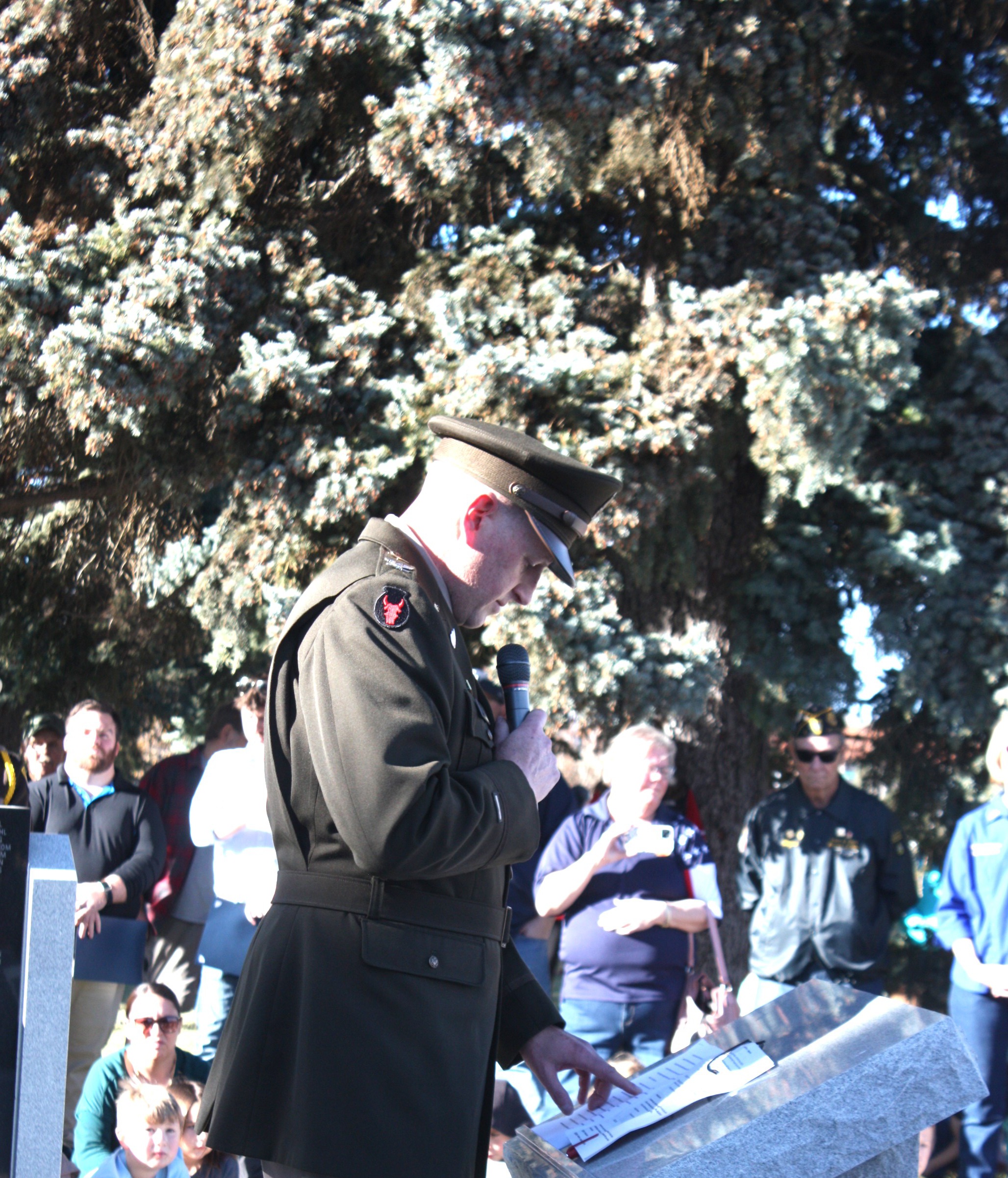 Image 1 Caption: Colonel of the Montana Army National Guard Chad Roudebush, the keynote speaker, recalled two of his uncles died in action in the Pacific during World War II.