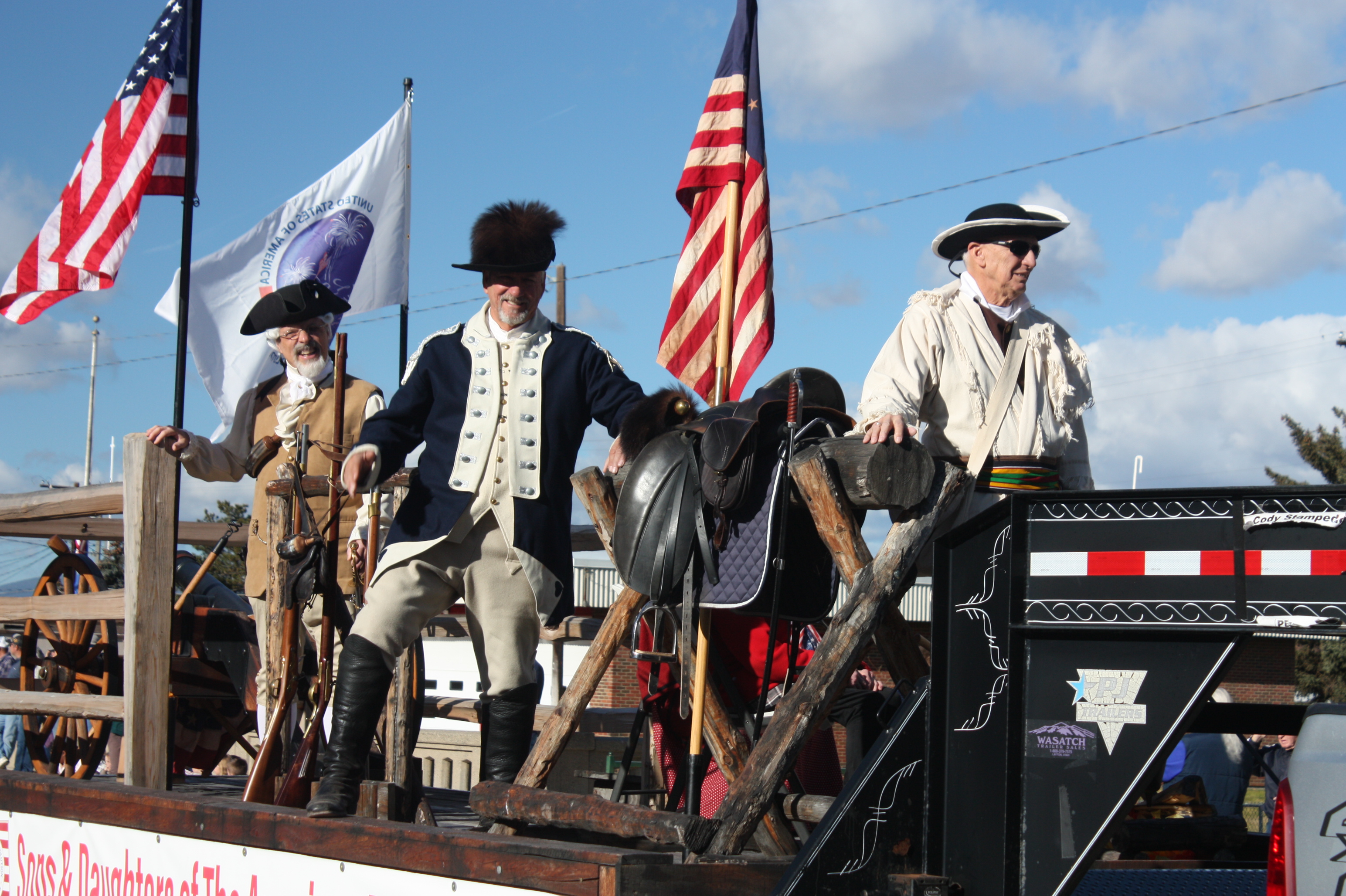 Image 4 Caption: Sons and Daughters of the American Revolution float depicting George Washington and his troops.