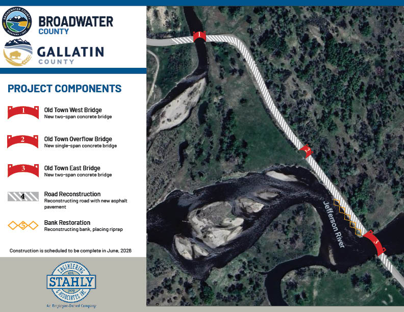 The Old Town Road Bridge Replacement Project, located at the southern end of Broadwater County along Old Town Road, continues to advance across three key bridge sites—East, Middle, and West—bringing the region closer to improved infrastructure and safer travel. Funded entirely through grants, this project has imposed no financial burden on local taxpayers.