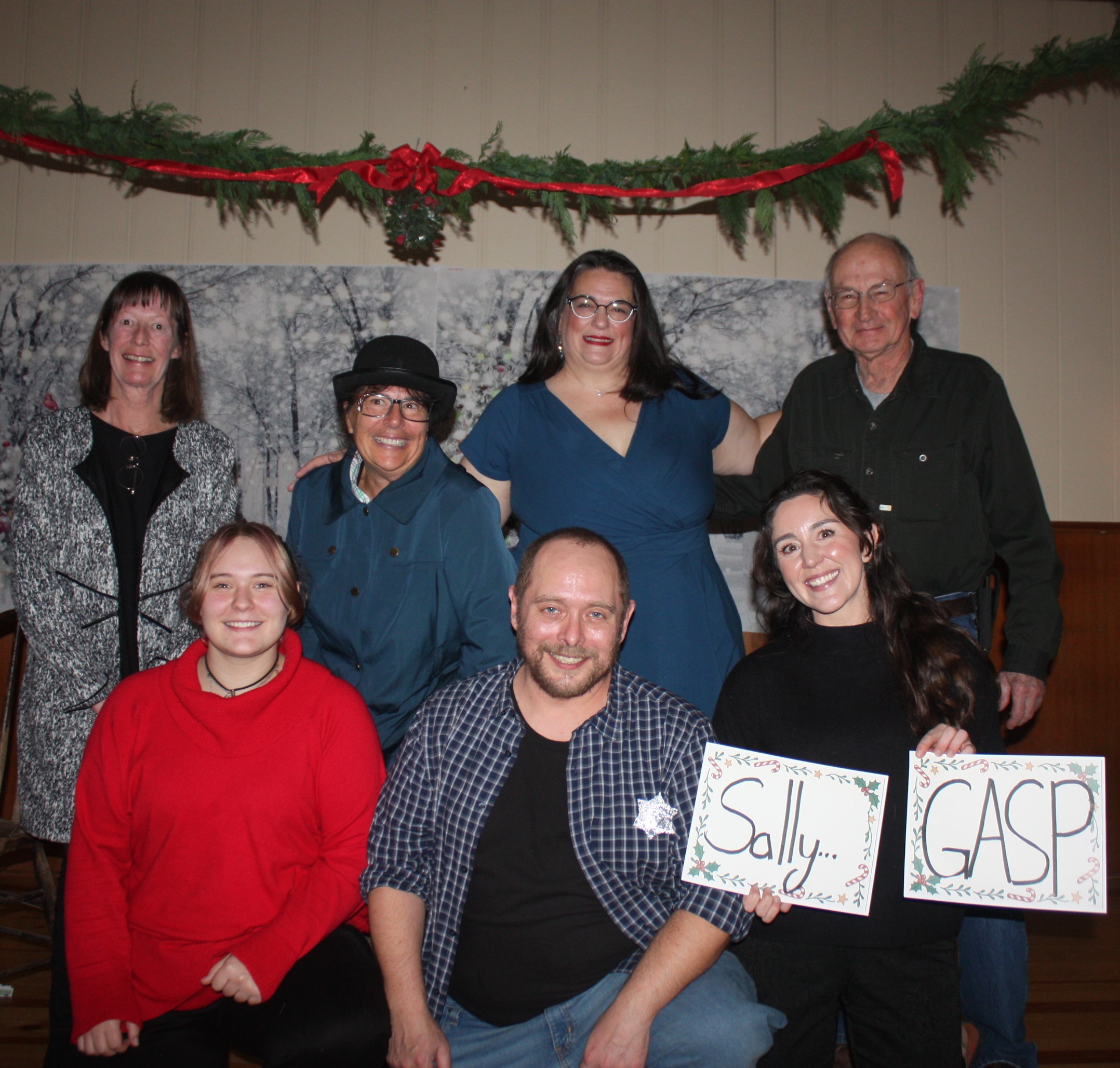 Flirty Sally, played by Rehanna Olson, worked at enticing board member Brad (Pat Plantenberg) and sheriff (Zach Johnson) to join her for mistletoe mischief while board chairwoman Lee(Renee Bauer) did her best to keep the meeting moving along. Lyz (Chloe Johnson), who is Flirty Sally’s conservative daughter, works at trying to keep her mom in line.