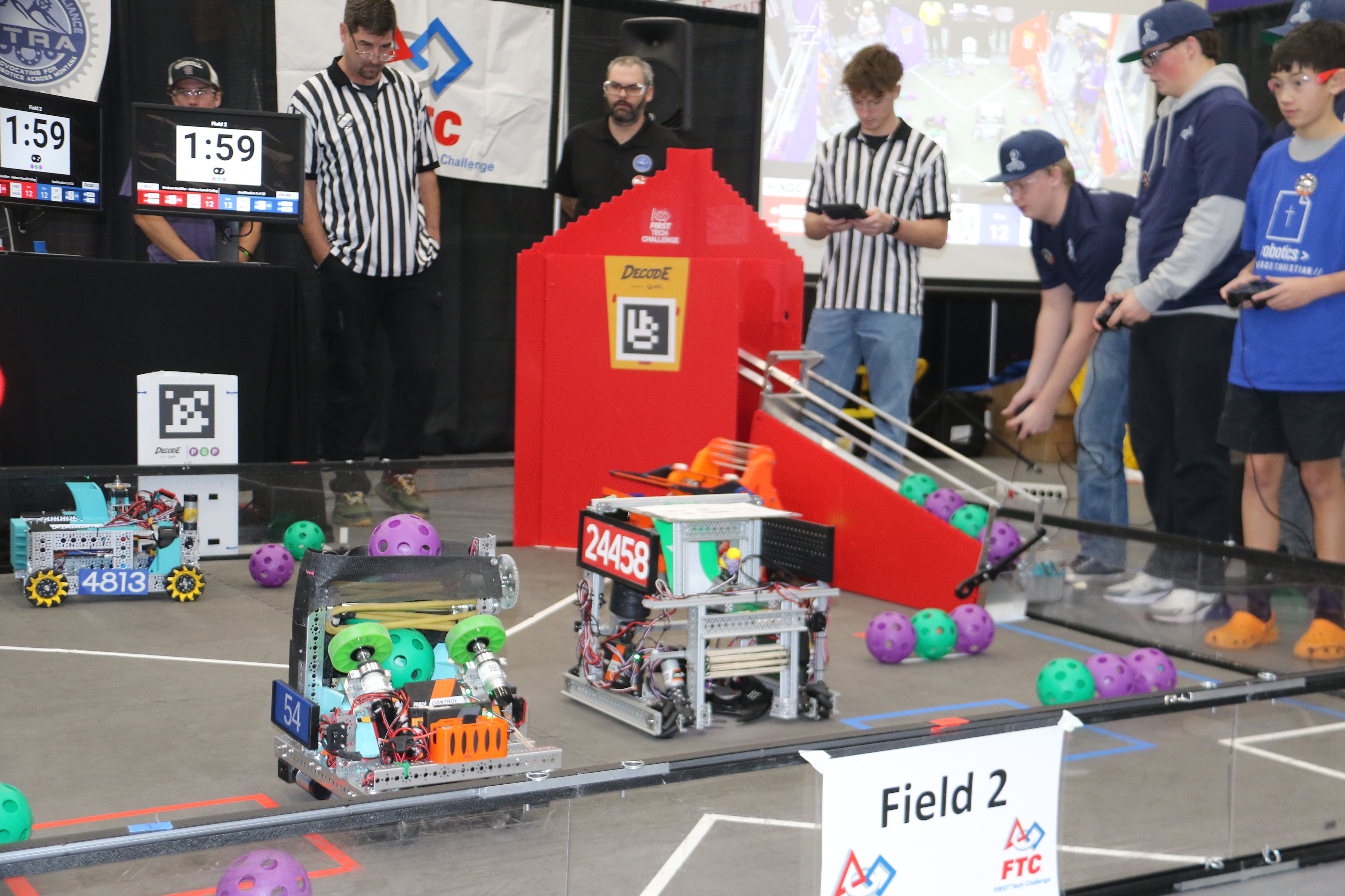 This year’s competition, put on by the FIRST organization, centers around shooting plastic balls into elevated hoops on a fast-moving field. Robots race to collect balls, line up, and fire at the targets under pressure. The match is a two and half minute match with 30 seconds of autonomous and two minutes of remote control. At the Carroll College competition, Broadwater’s robot earned a reputation for its powerful shooter—one that the announcer jokingly referred to as a “death ray.” The robot sent balls rocketing toward the hoops with impressive speed and force.