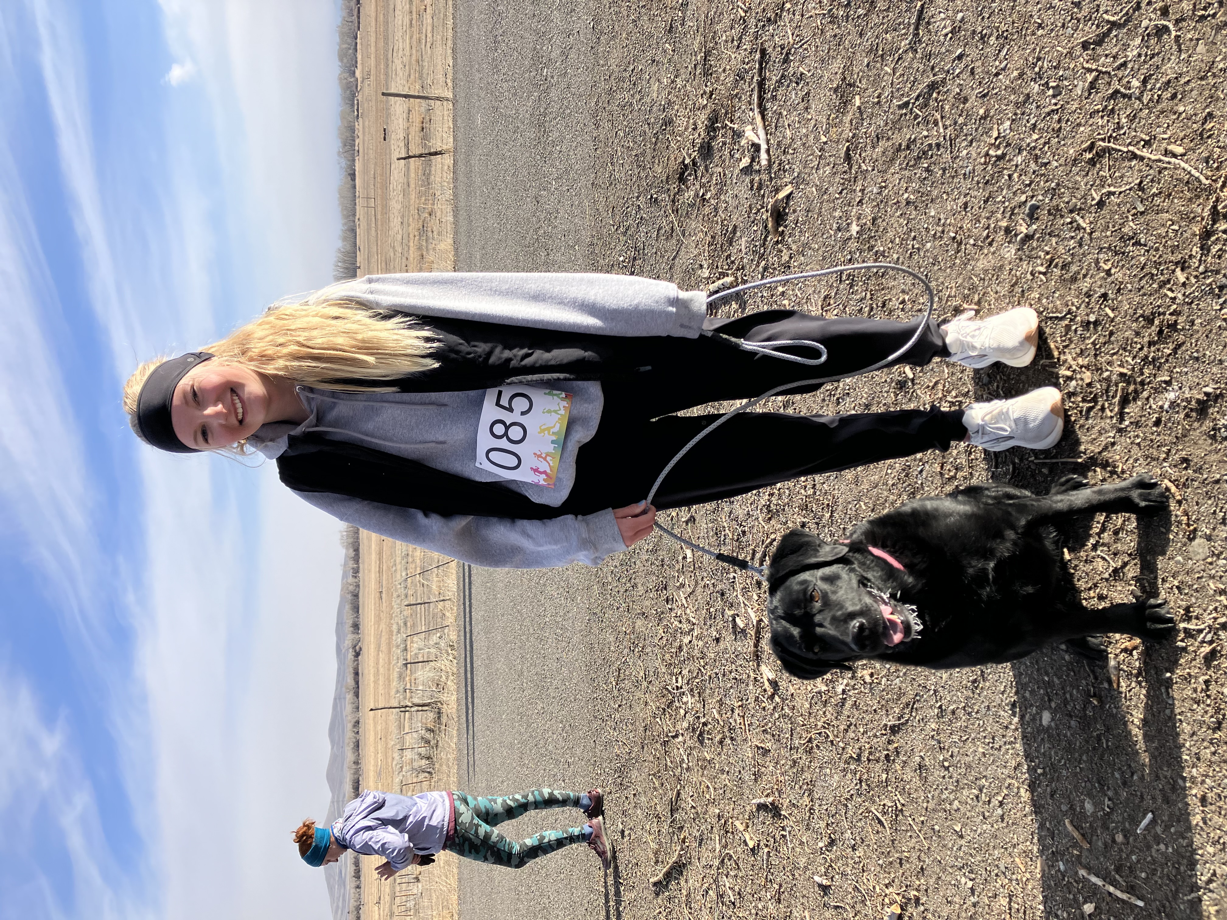 High school cross country runner Elaine MacDonald did the 5K in 29 minutes with her dog, Charley. The six-year-old English labrador runs with her often, Elaine said.