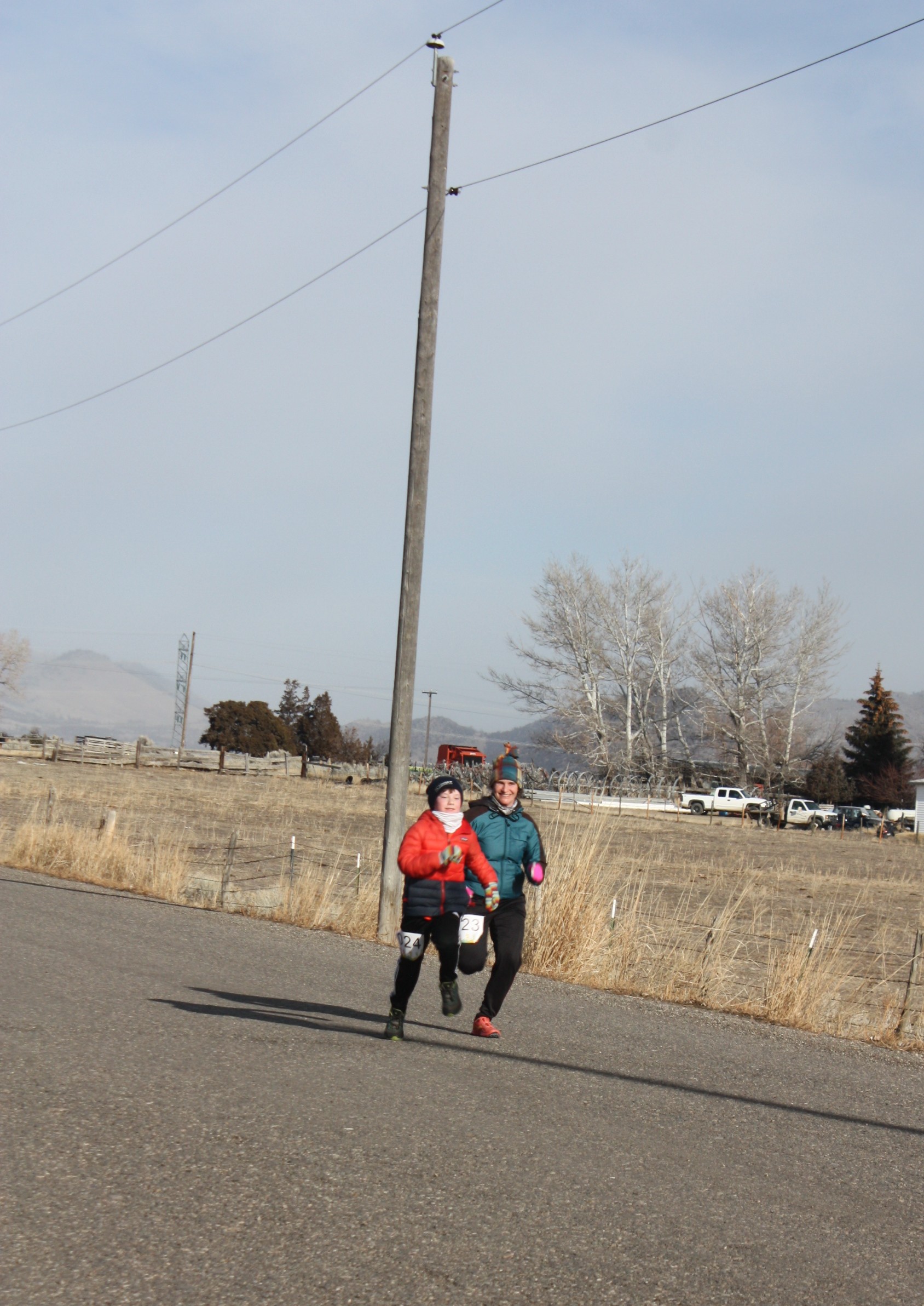 It was a cold, gray day to run a race, but the sun came out just as runners were finishing the race at the second annual Radersburg Ramble. Organizer Karen Walton said she was pleased that ten more runners than last year came out, even though the weather was about the same–– 8 degrees above zero.