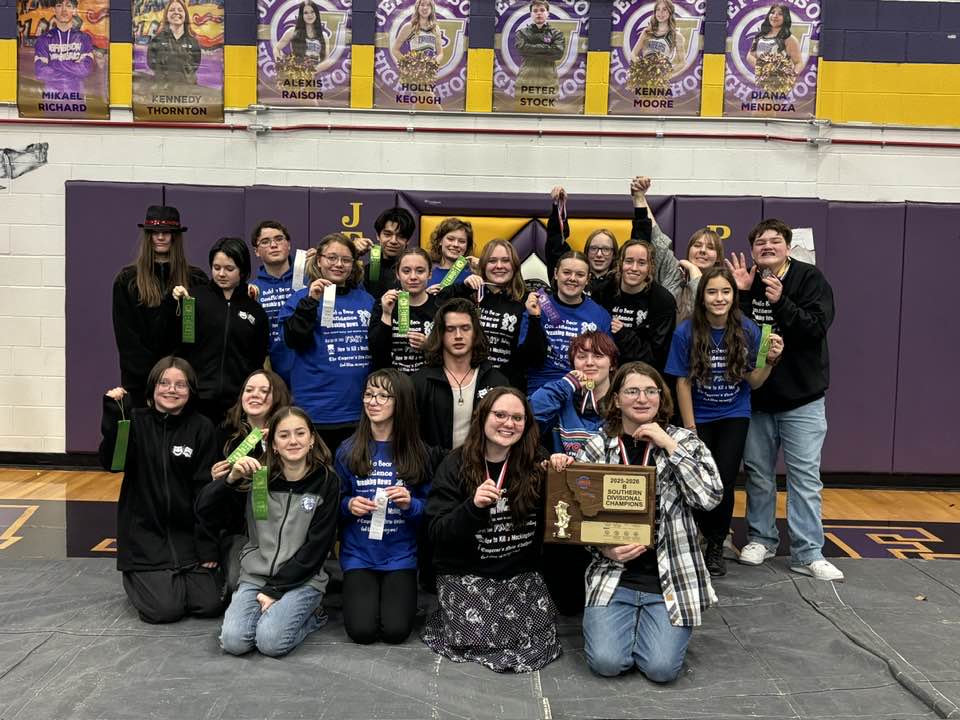 Senior Aubrey Wells and Sophomore Chloe Johnson are also event Divisional champions! They paired up as our entry in the Dramatic Theater Category and came out on top with their piece about a couple in turmoil.