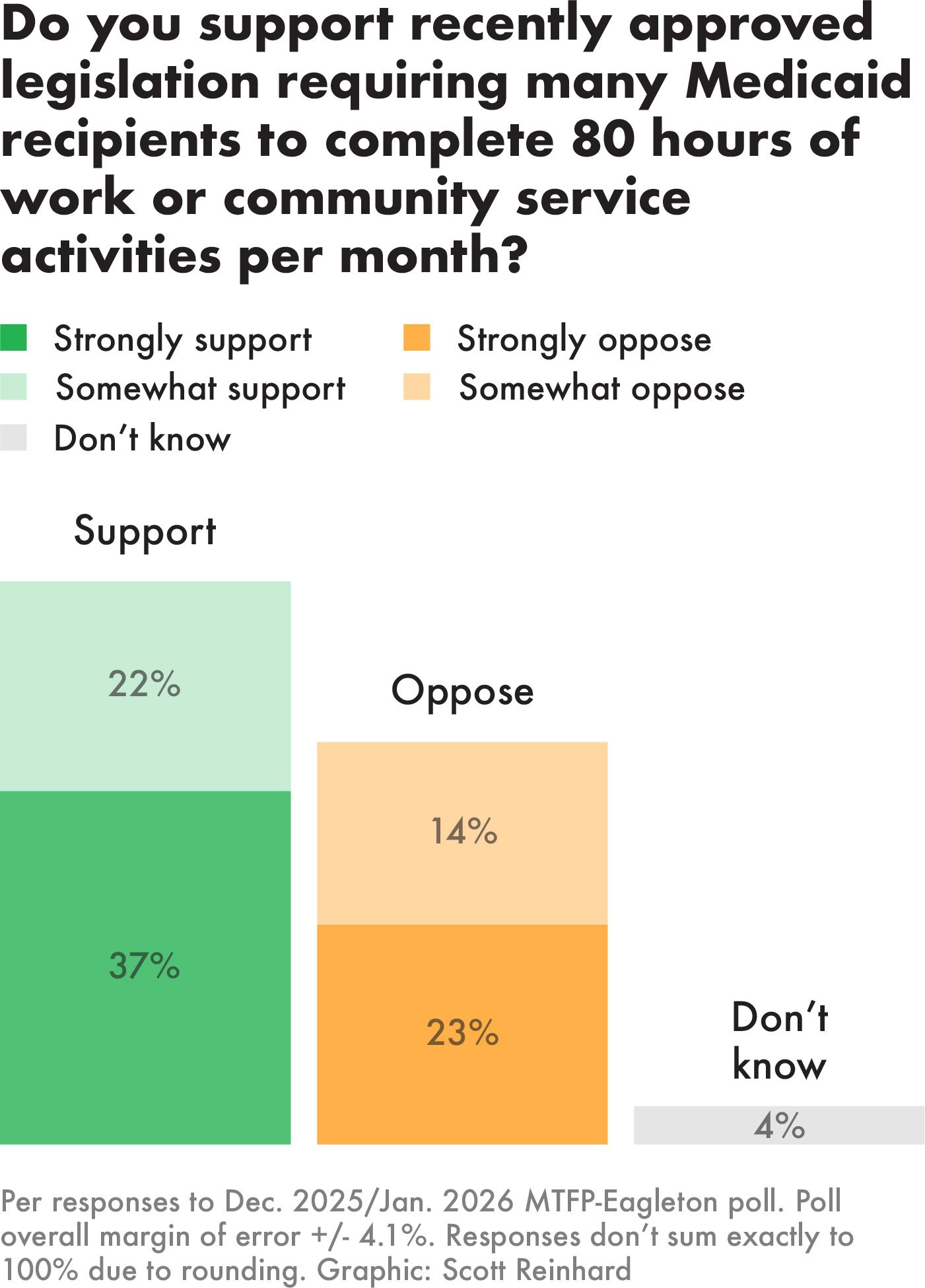 An MTFP-Eagleton Poll found that 59% of survey respondents supported mandatory work and community engagement hours for Medicaid recipients.Read the full Article
