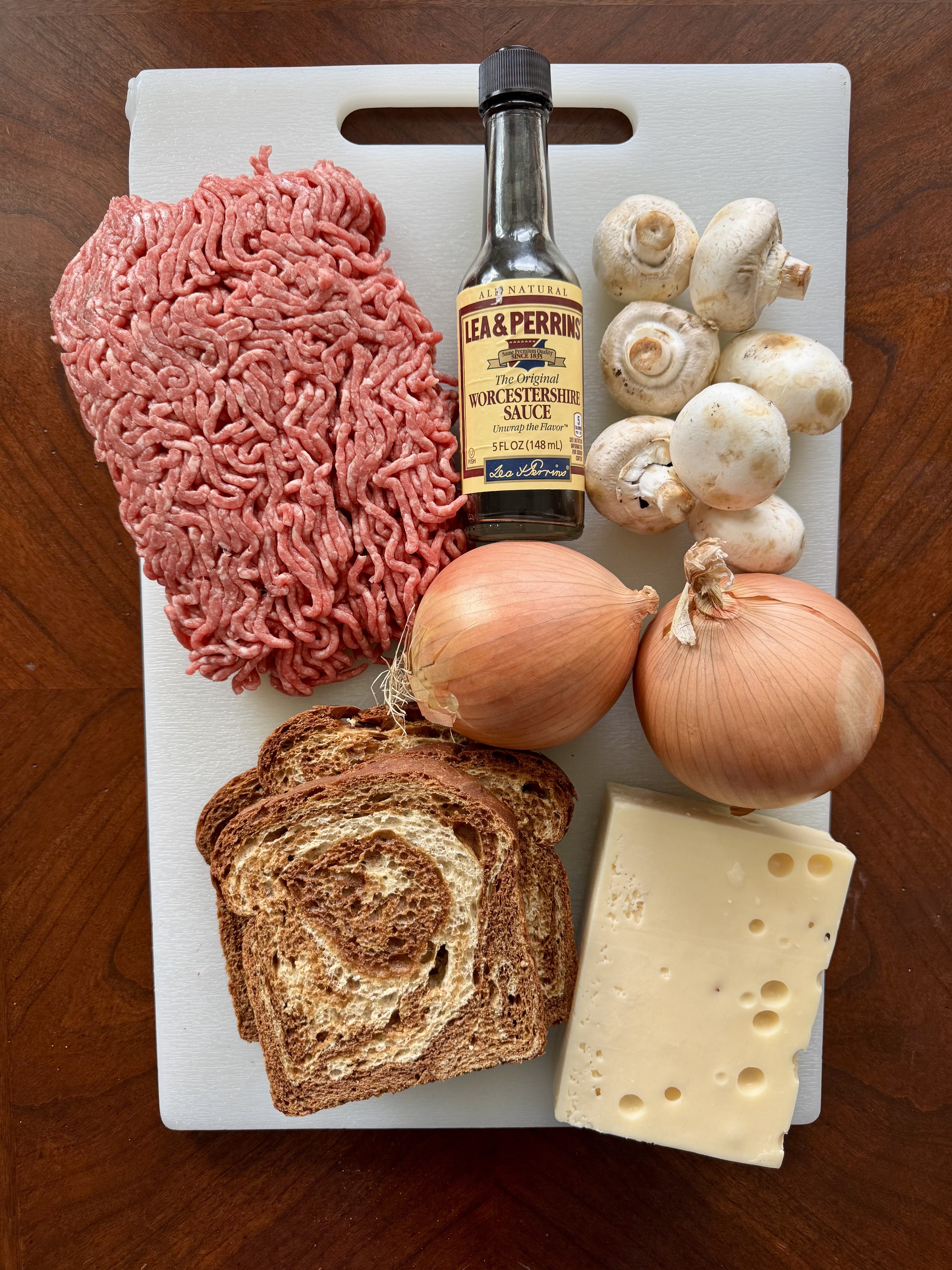 The hamburger patty that gives the dish its name is usually substantial (1/3 to 1/2 pound), making this sandwich a real meal. The cheese — also essential to the name — functions as a gooey glue binding meat to bread. I usually use Swiss or provolone, but American cheese is a totally legitimate substitution that hearkens back to the grilled cheese sandwiches of youth.