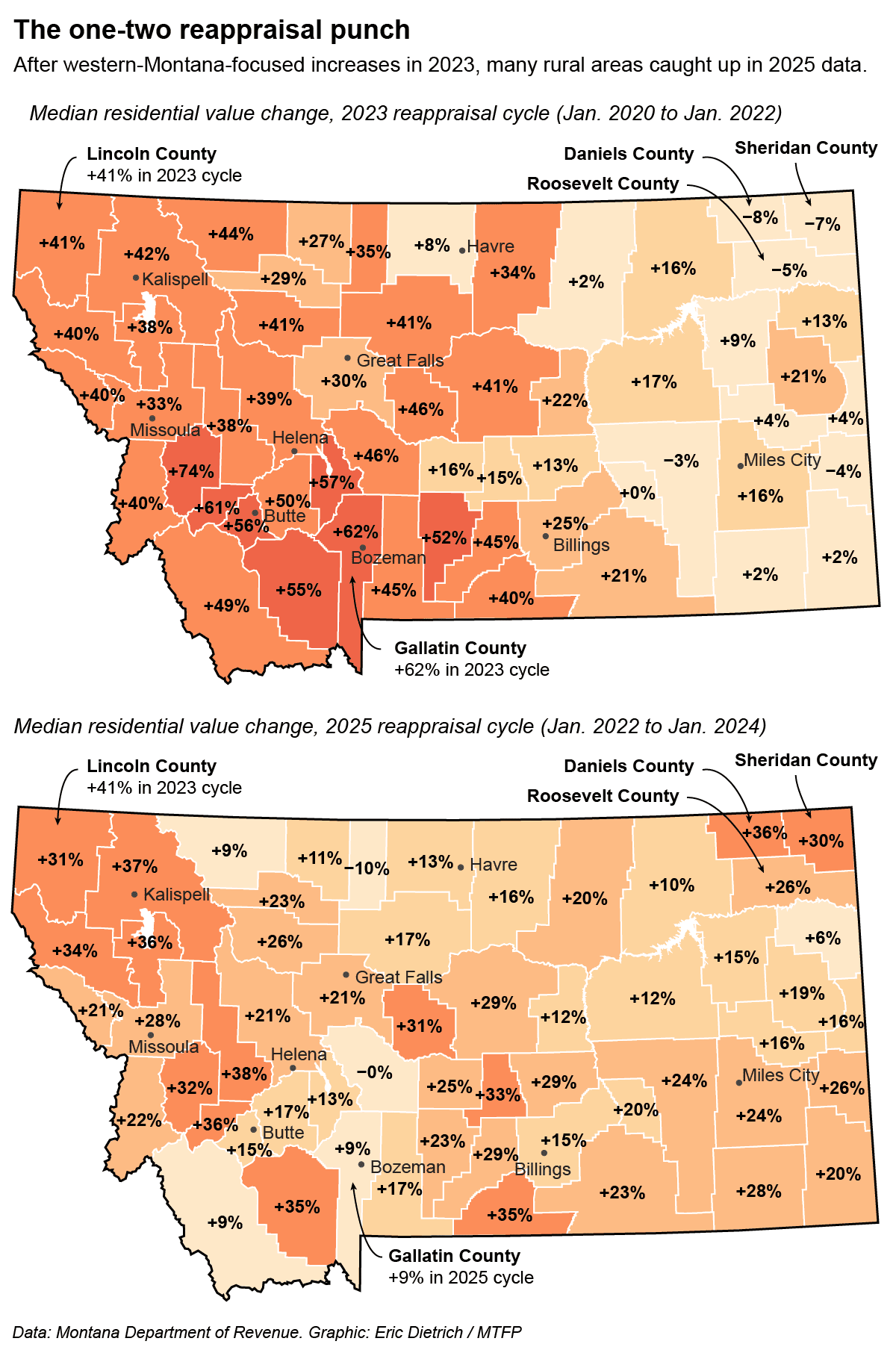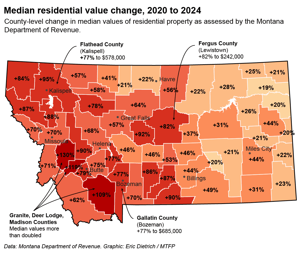 Additionally, many rural plains counties in north-central and eastern Montana have also seen hefty increases in excess of 30% or 40%, according to the state data.