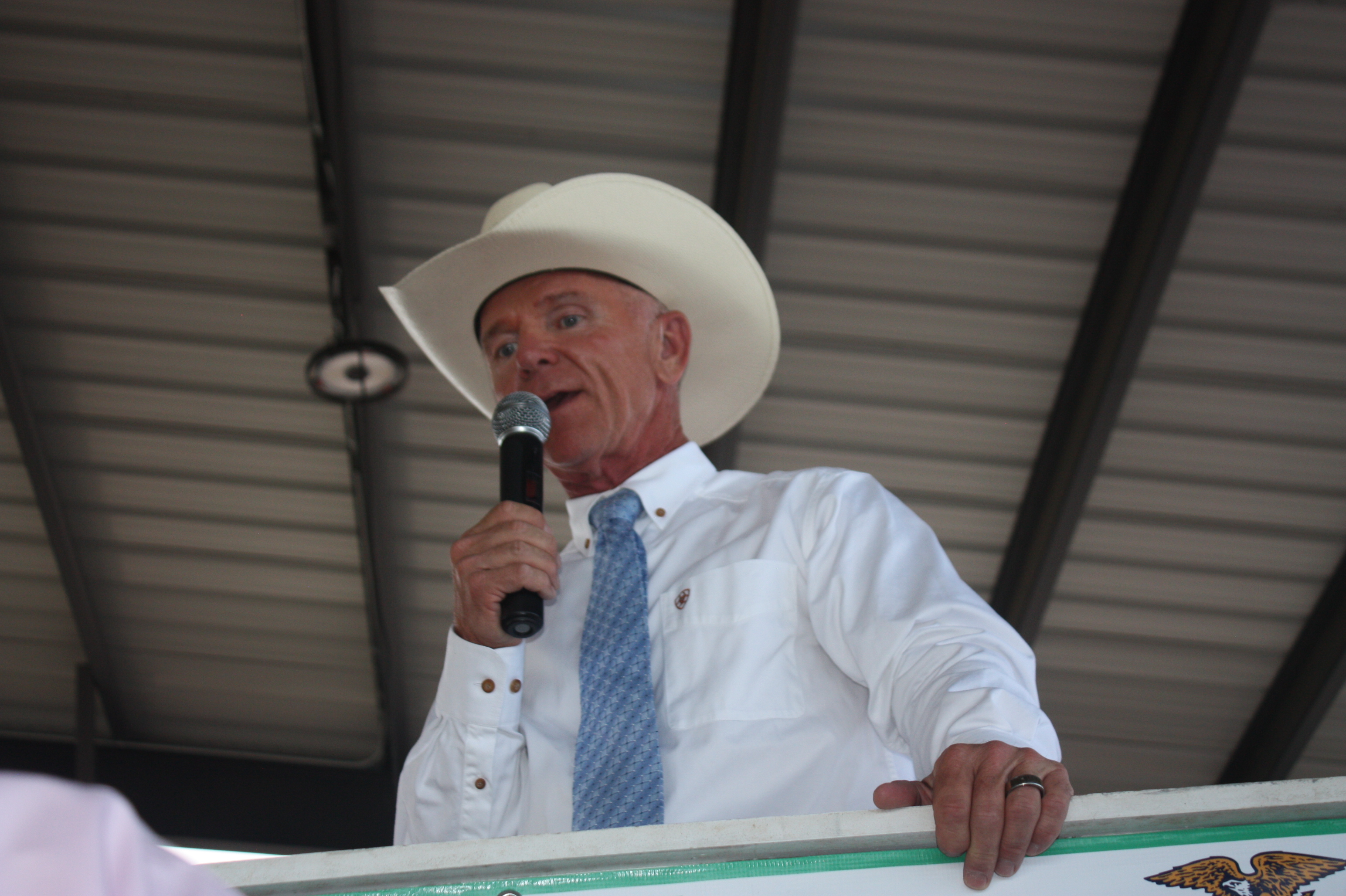 Image 2 Caption: Three Forks resident Dean Folkvord regularly works the sale as the auctioneer.
