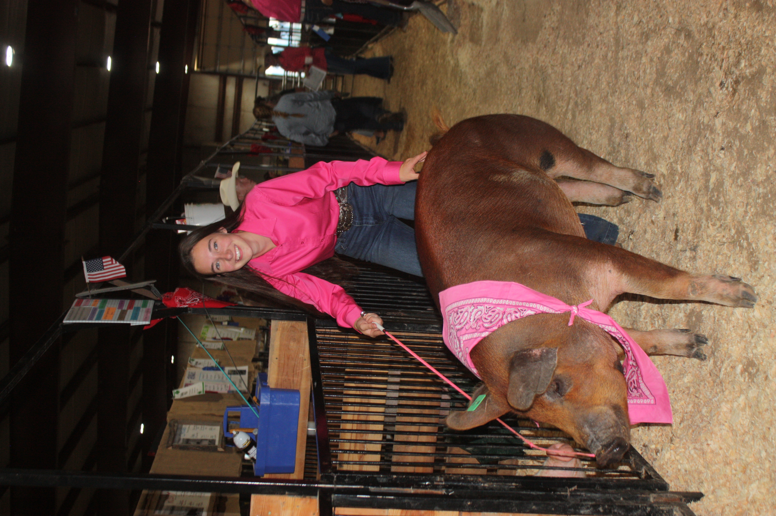 Image 1 Caption: Grace Kroeger with her winning market pig.