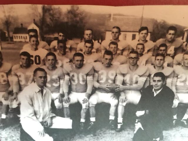 Image 1 Caption: 1964 Broadwater County High School football team with coach Casey Keltz.