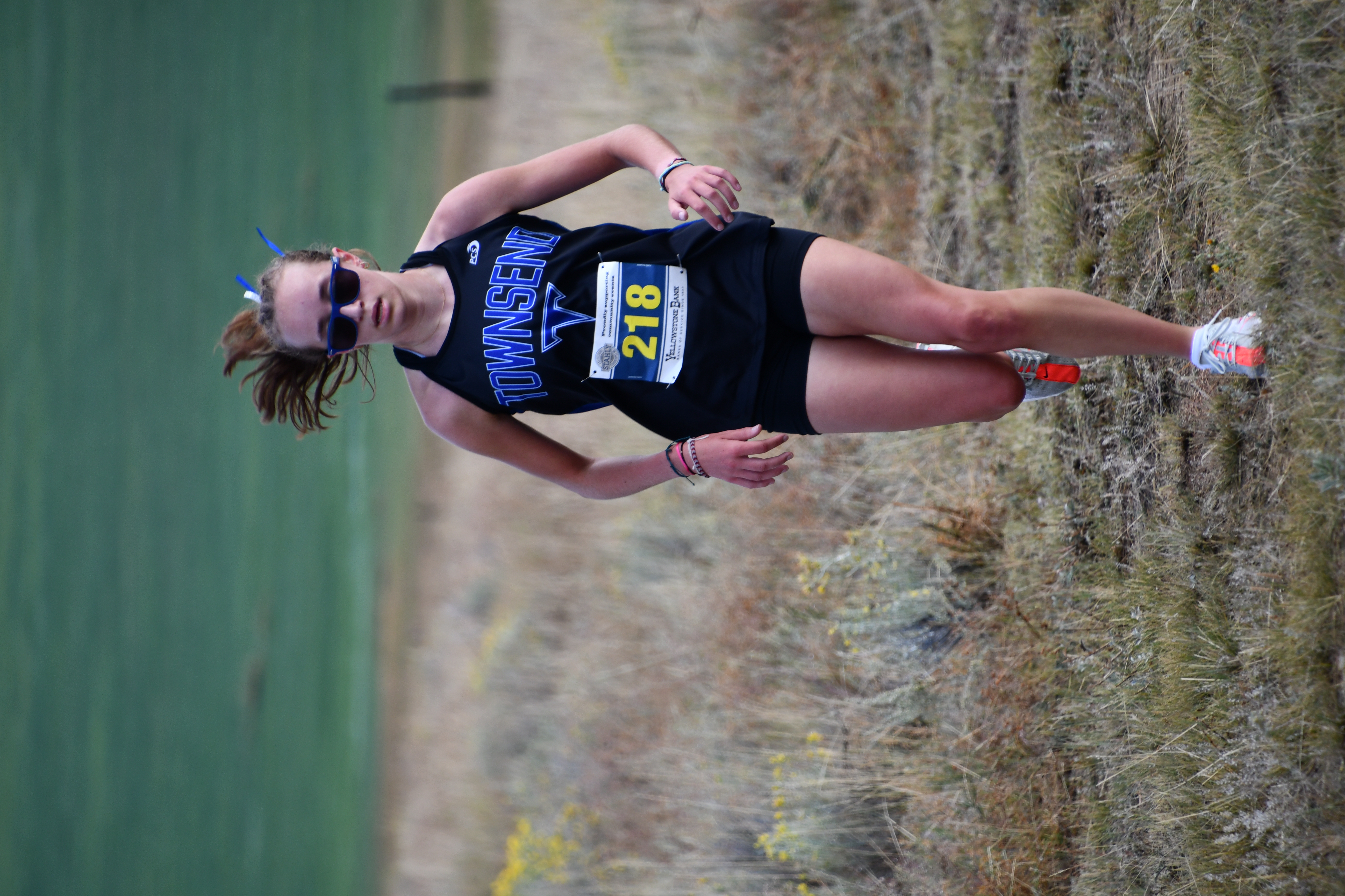 The Varsity Ladies were next. Junior Kyla Meissner took more than a minute off her time from last season’s opener to secure her third straight win on the Jefferson course with a time of 19:38. Sophomore Elaine MacDonald placed 11th with a time of 22:17. Juniors Bella McDaniel (24:16) and Shalyn Sentinella (25:11; two-minute improvement from last year!) finished 21st and 24th. Neither the varsity nor junior varsity girls’ teams tallied team scores as their runners were split between the two races.