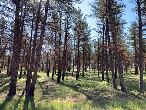 Image 2 Caption: Example of a treated unit under the Jimtown Project (thinning, pile burning and broadcast burning), 11 months after the Horse Gulch Fire. Note the green canopies and native grasses present.