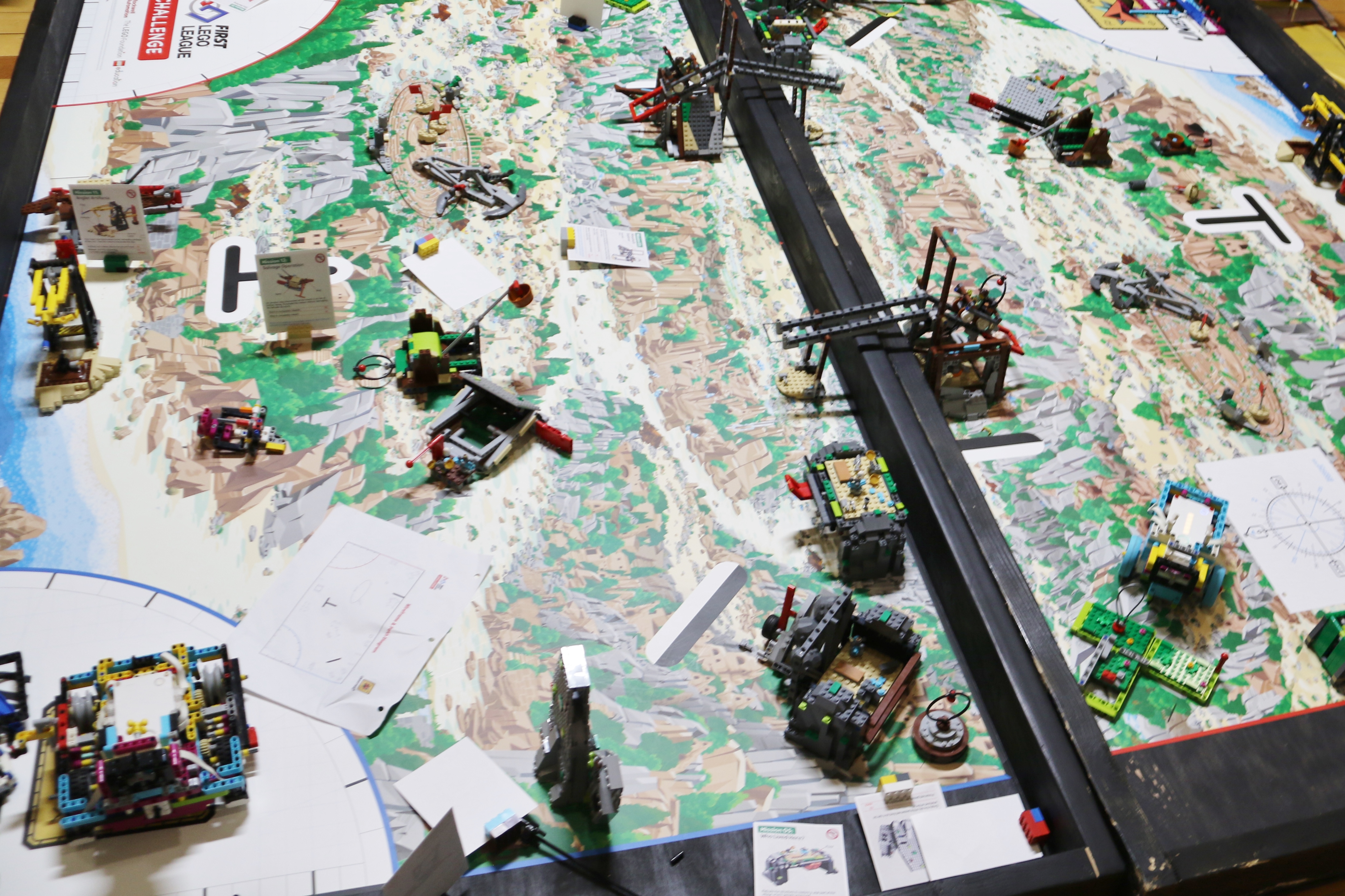There are two very impressive classes at The Lodge of Townsend that combine LEGO and robotics. They meet on Tuesday and Thursday evenings. The 6th to 8th-grade students are in the FIRST© LEGO© League, which introduces STEM (Science, Technology, Engineering, Math) to them. They have two teams building the robotic devices, with each team having a topographical map on a 4-foot by 8-foot piece of plywood showing where the robots can go. The two pieces of plywood lay next to each other on the floor, but robots are allowed to cross over. They range in size from about 4 inches to about 10 inches, may have extending forklift tongs, drive motors, rotating wheels, etc. Some are shaped like trailers; some are shaped like a cube. The students control the robots via a laptop computer. LEGOs constitute the majority of the robot frames.