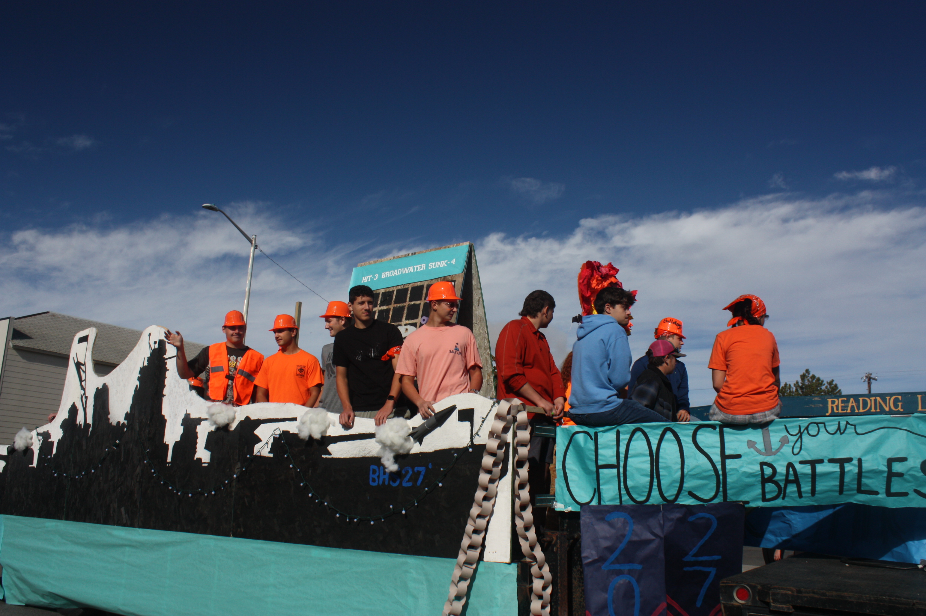 Image 4 Caption: The Junior Class picked the boardgame name Battleship for its float theme.