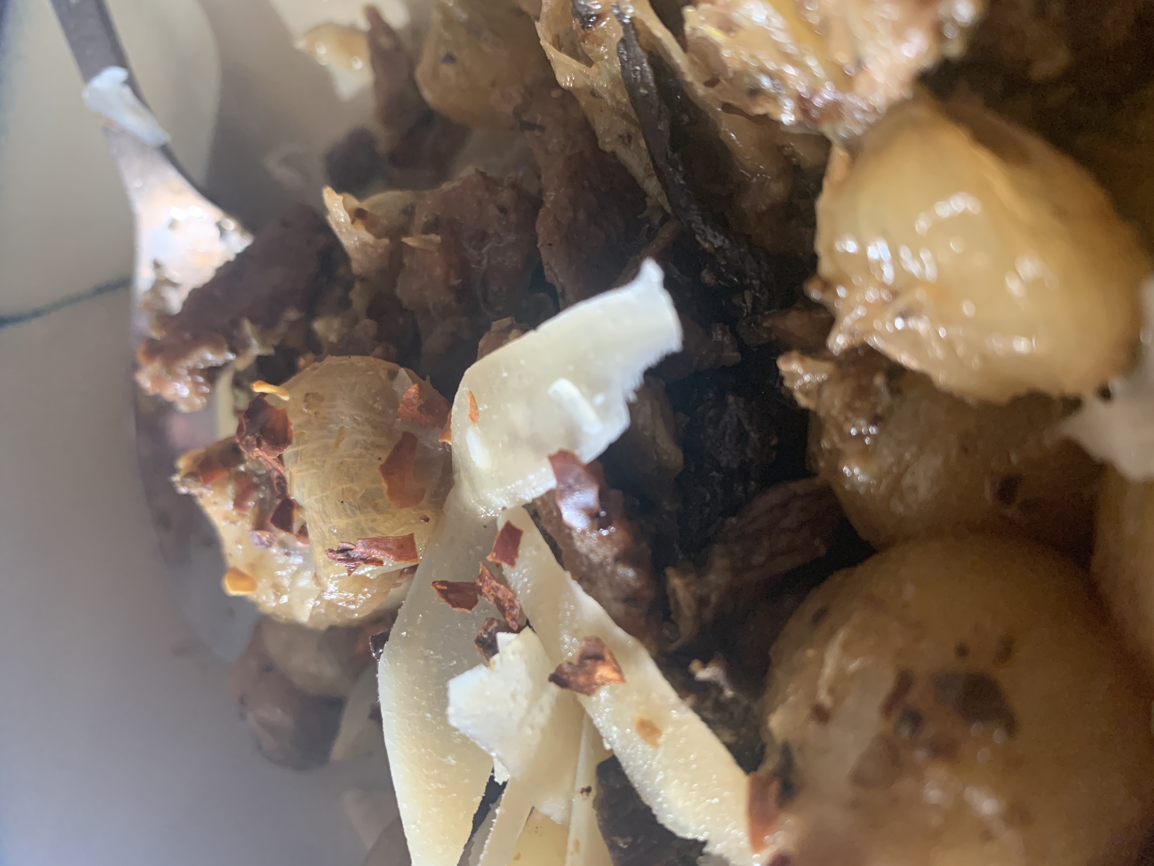 It’s a soup. And, while I originally made it with wild pig meat, which is how it got its name, over the years it’s become an ‘any meat’ soup. From pheasant and turkey to antelope, elk, whitetail and mule deer, the combination of spices with pearl onions and shiitake mushrooms pairs well with anything I have tried so far.