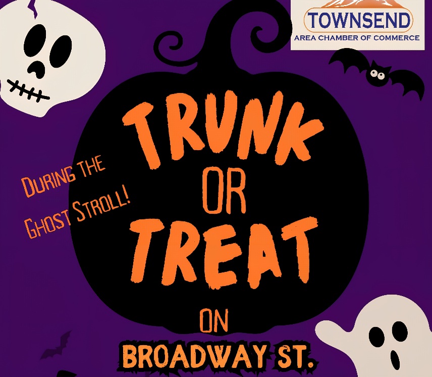 On October 31st, the Townsend Area Chamber of Commerce invites families, friends, and neighbors to join in the annual Ghost Stroll and Trunk or Treat—a beloved event that transforms downtown Broadway into a festive, candy-filled celebration.