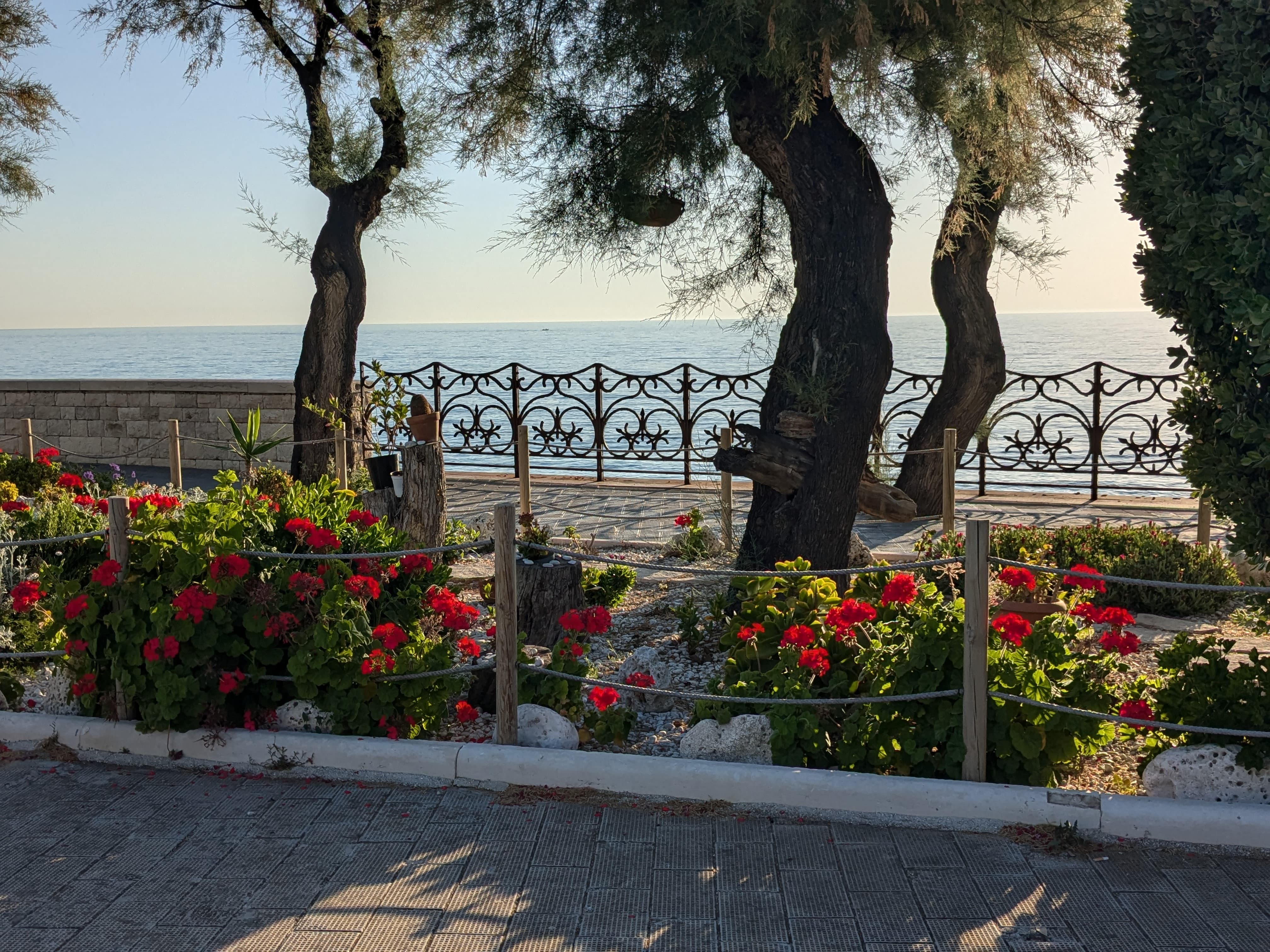 We have a typical Italian breakfast of yogurt, a sweet cake called a cornetto, and espresso or cappuccino. We are then ready to head out on our four-mile walk along the coast of the Adriatic Sea (the Italians call the walk area the lungomare). We see many other walkers ready to wish us a good morning.