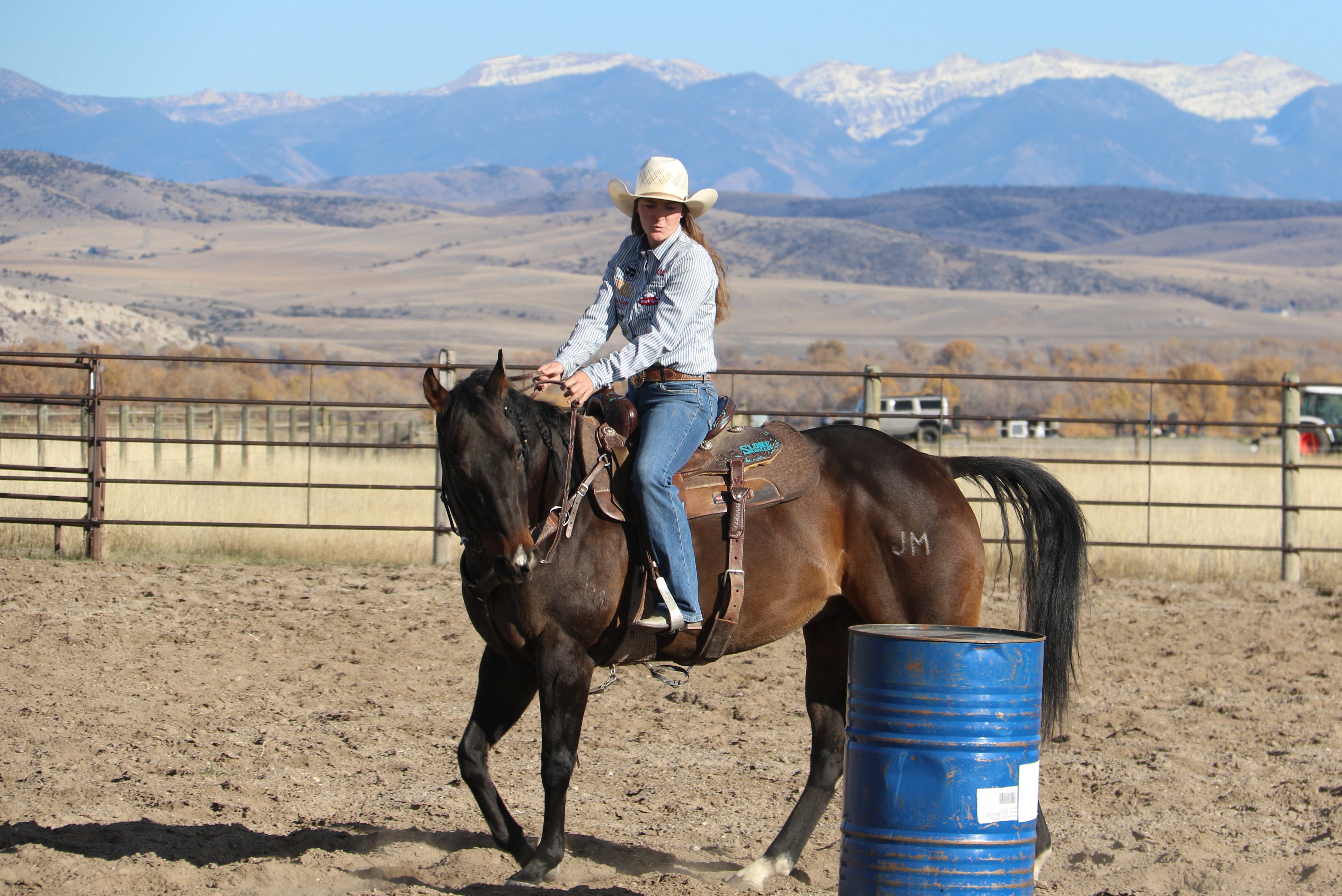 Image 2 Caption: Barrel Racer Tayla is riding her horse Lizard at the 4M ranch in Three Forks