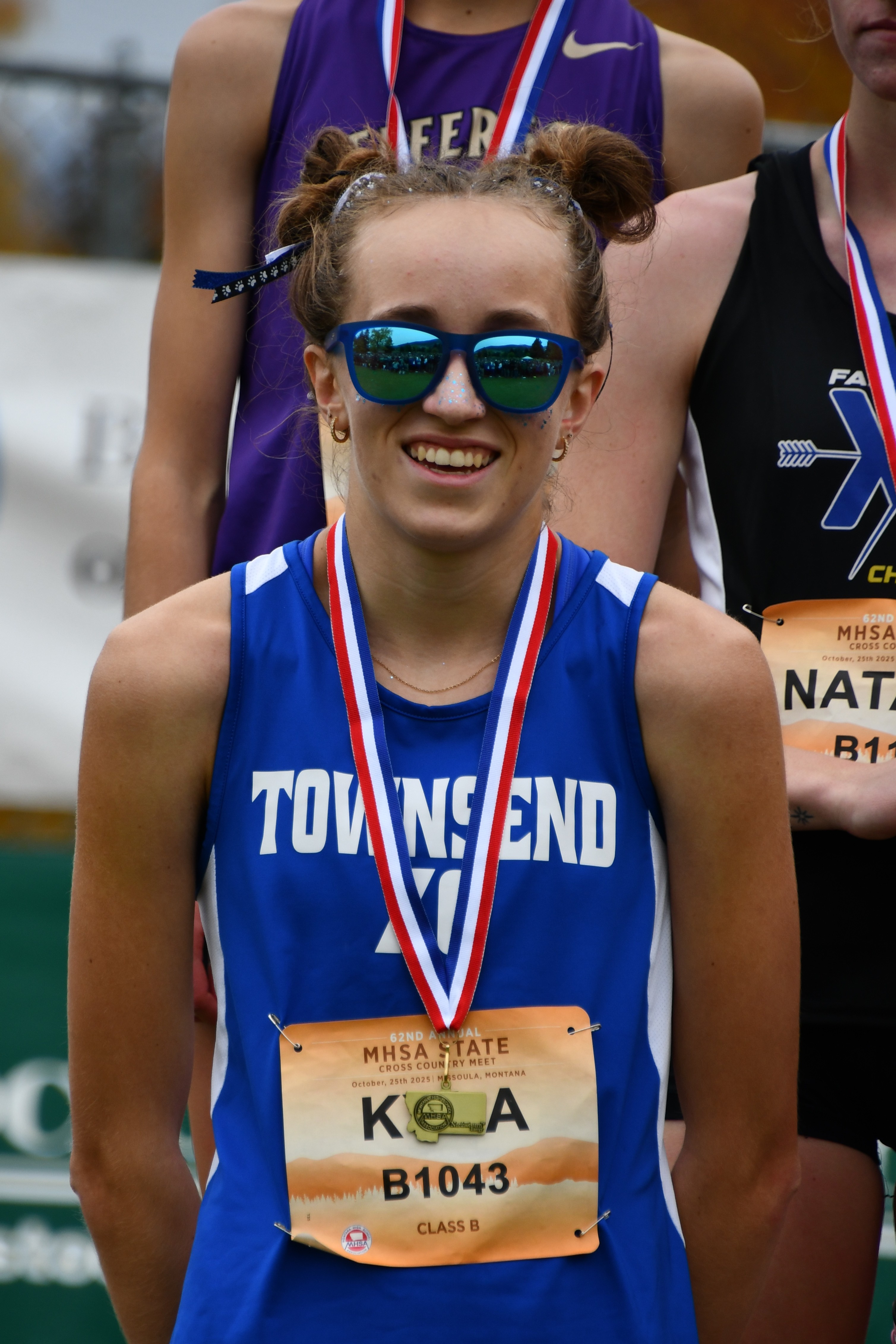 Junior Kyla Meissner won the Class B Cross-Country state championship this past Saturday in Missoula. She took the lead before the first turn and didn’t look back, clocking a time of 19:32, twenty seconds ahead of her closest competitor, Della Sebring from Manhattan.