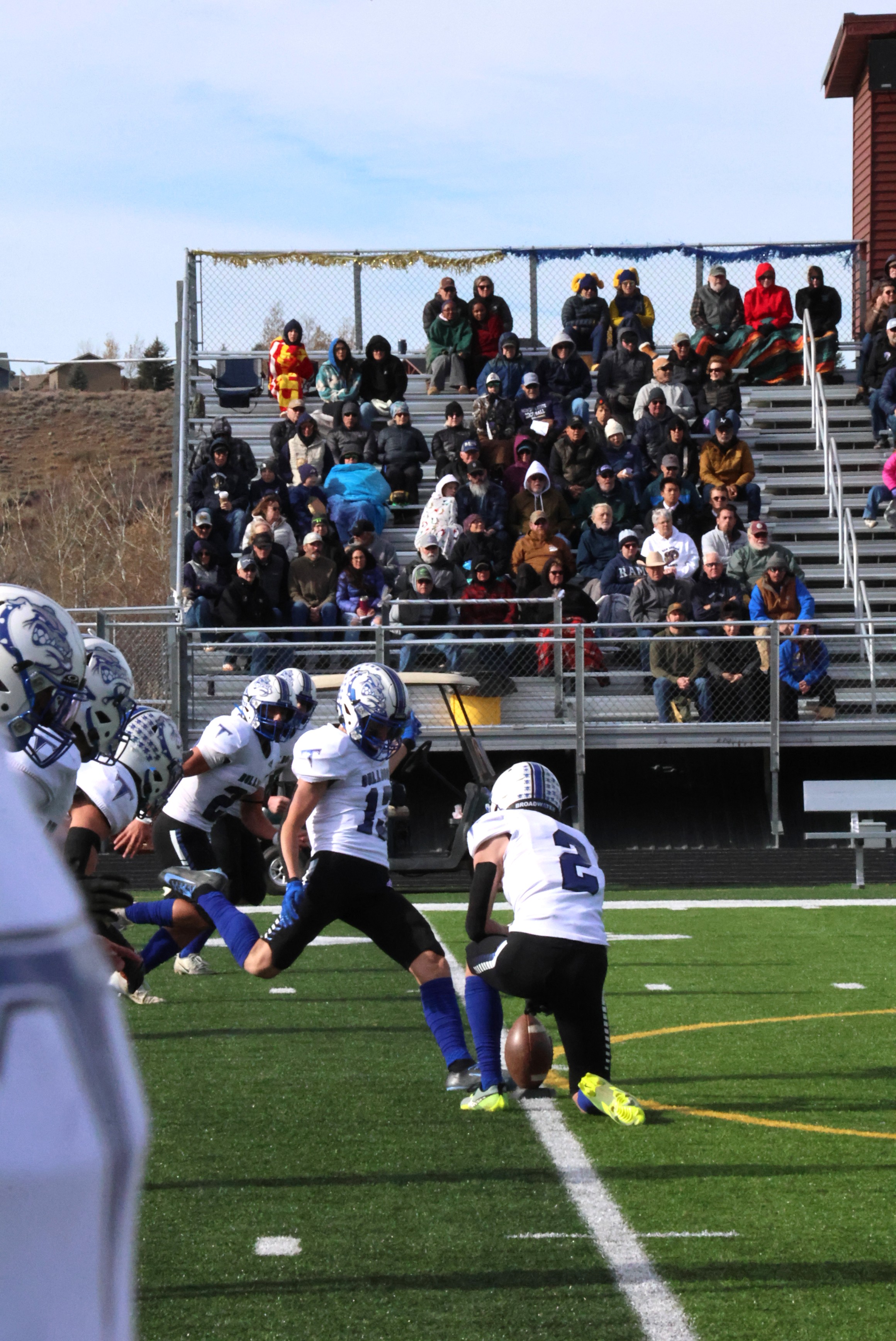 Late in the second quarter, Red Lodge finally scored a touchdown to tie the score. The Bulldogs had another offensive possession but were forced to punt. On their next possession, Red Lodge scored a touchdown but missed the extra point. When the Bulldogs had another good offensive possession, Tavyn Anderson threw a touchdown pass to Tannen Tufflemire. The extra point from Logan Johnson barely missed because of the wind. As the clock ran down, Tavyn Anderson intercepted a Red Lodge throw, but the clock ran out. The game was tied 13-13 at the second half.