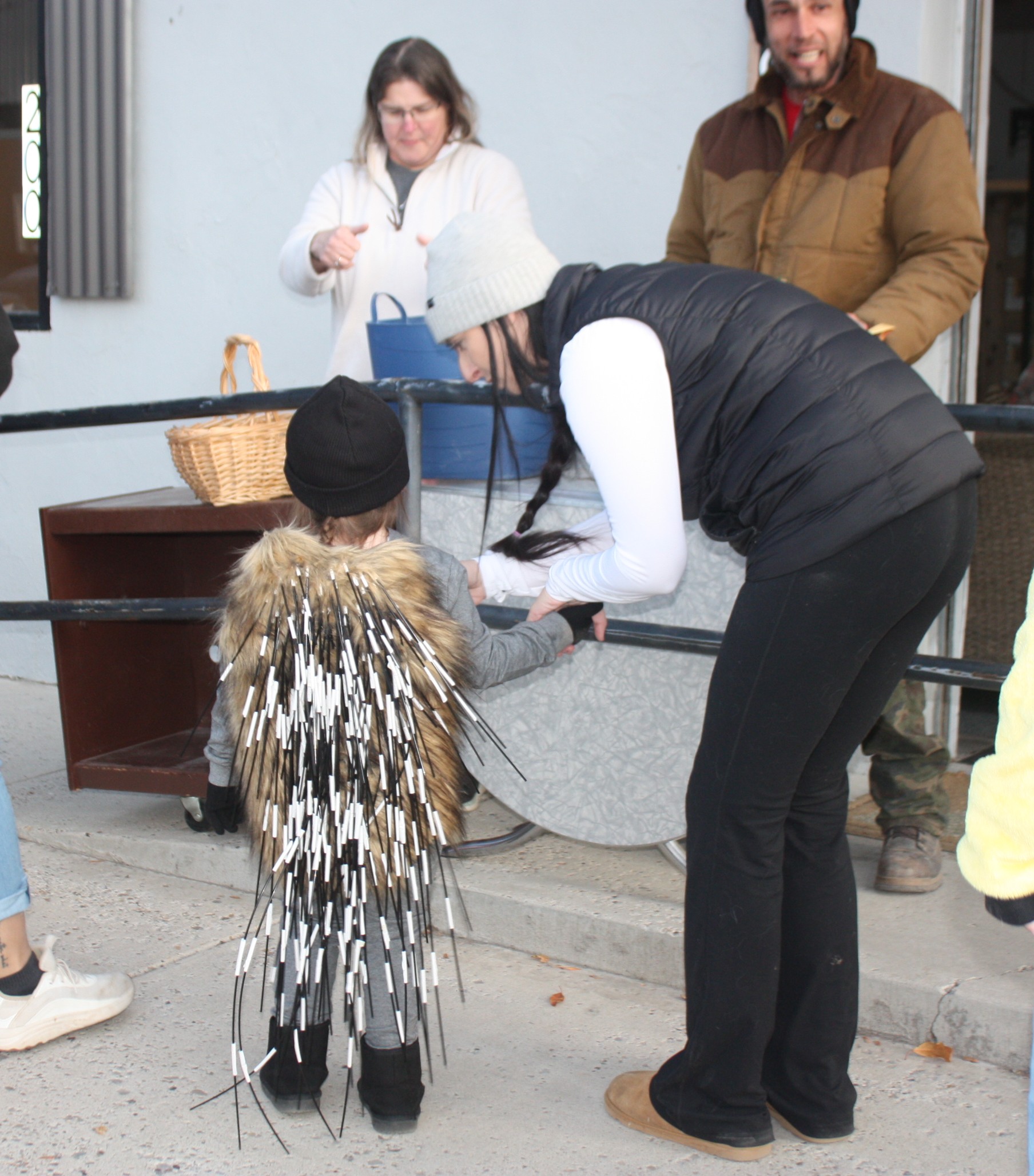 Image 2 Caption: All kinds of wild animals inhabited the Stroll, but this porcupine "stood out." Mom adjusts the quills as costumed child searches for candy.