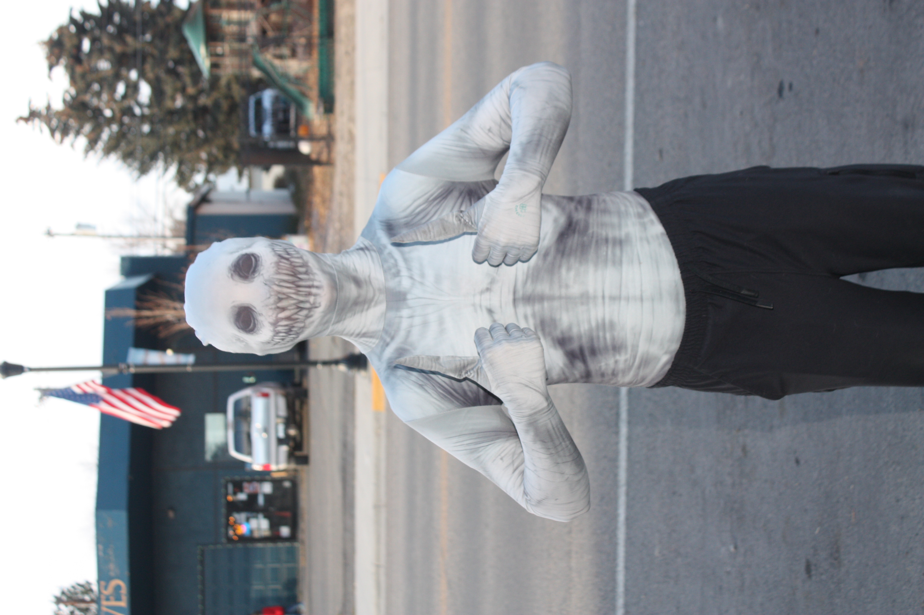 Image 5 Caption: This scary ghoul costume loomed large while its stroller searched for "soul satisfying" candy.