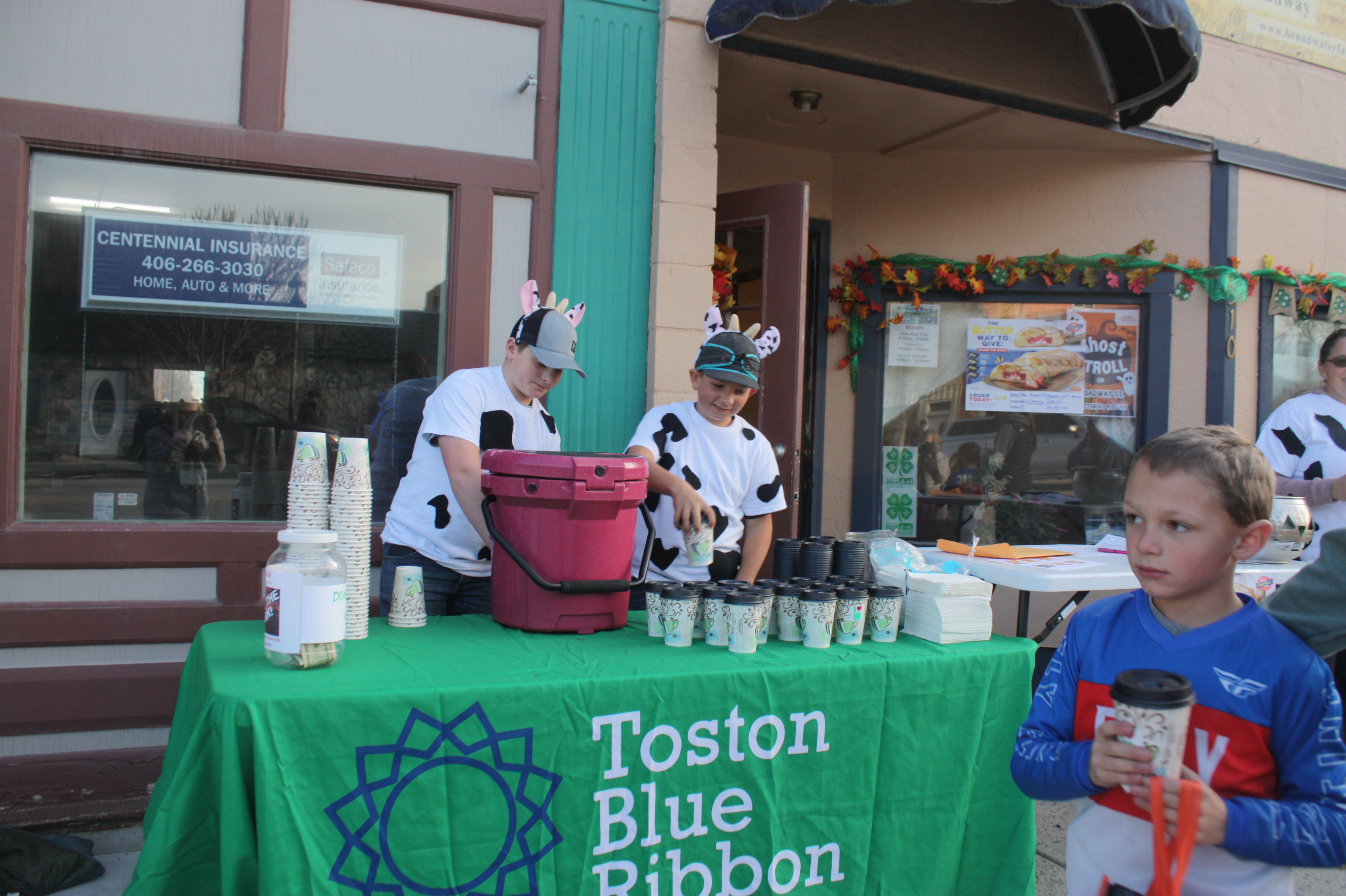 Image 4 Caption: Toston Blue Ribbon 4-H Club provided hot chocolate for the strollers. The evening weather was fine. Cocoa made it even better.