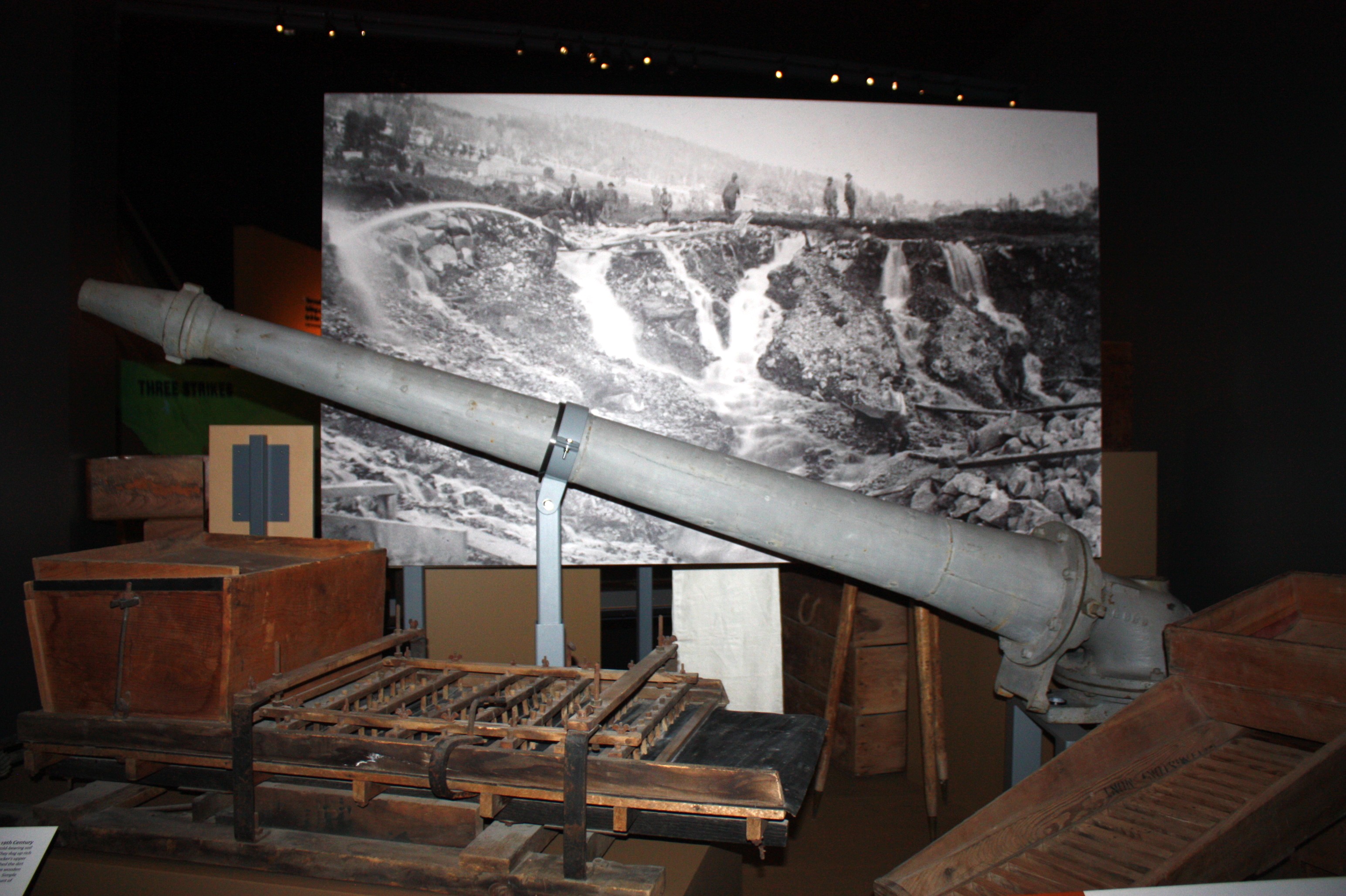 Image 3 Caption: A huge hose nozzle used to wash gold from the sides of mountains fills this display. Diamond City, in Confederate Gulch on Canyon Ferry's east side, was totally washed away by hydraulic mining.