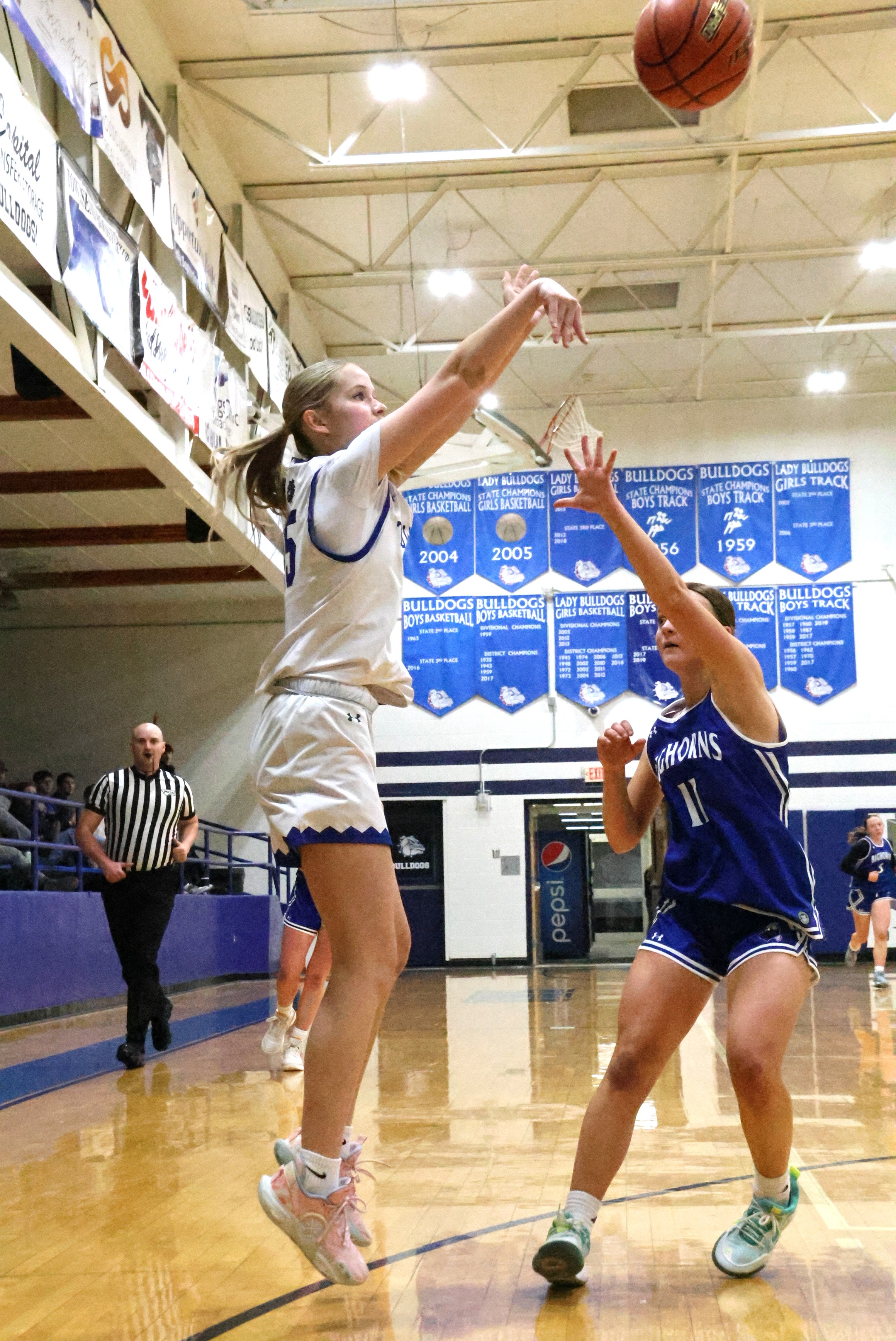 The boys’ varsity game started close, but the Bulldogs were able to pull out the win, 58 to 43 in the end. Trenton Hoveland led the Bulldogs with 16 points, and Bryce Lessley had 15 points. Tavyn Anderson also helped the Bulldogs, scoring 13, and Tannen Tuffelmire scored 12 points.