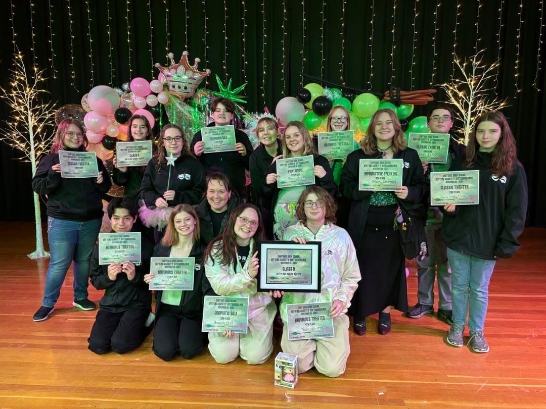 Image 1 Caption: Bulldog Speech and Drama Team members proudly displaying their winnings at Shelby. Top row from left: Zoe Osborne, Shalyn Sentinella, Sarag Morgan, Aiden Thompson, Ava Boaz, Tessie Hughes, Lyrique Bryant, Chloe Johnson, Lucas Feller, Anabell Kline. Bottom Row from left: Simon Sanchez, Angel Sentinella, Coach Denise Bakkum, Hannah Hall and Noah Borror.