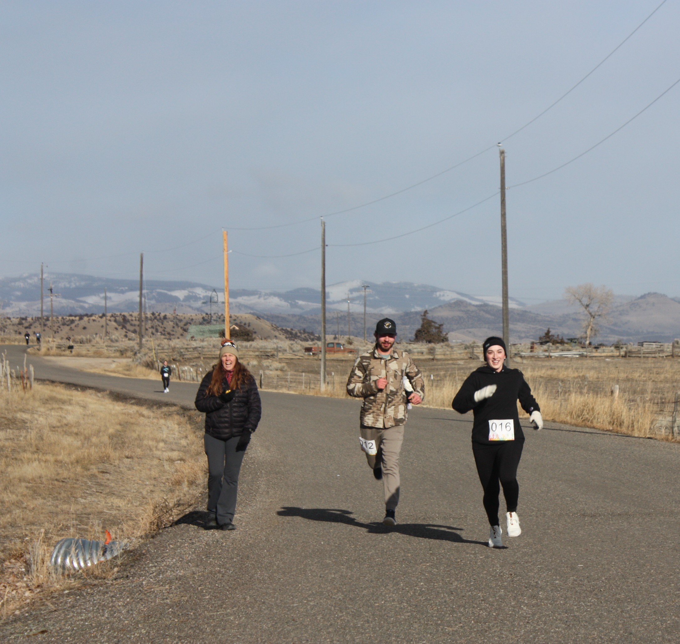 It was a cold, gray day to run a race, but the sun came out just as runners were finishing the race at the second annual Radersburg Ramble. Organizer Karen Walton said she was pleased that ten more runners than last year came out, even though the weather was about the same–– 8 degrees above zero.