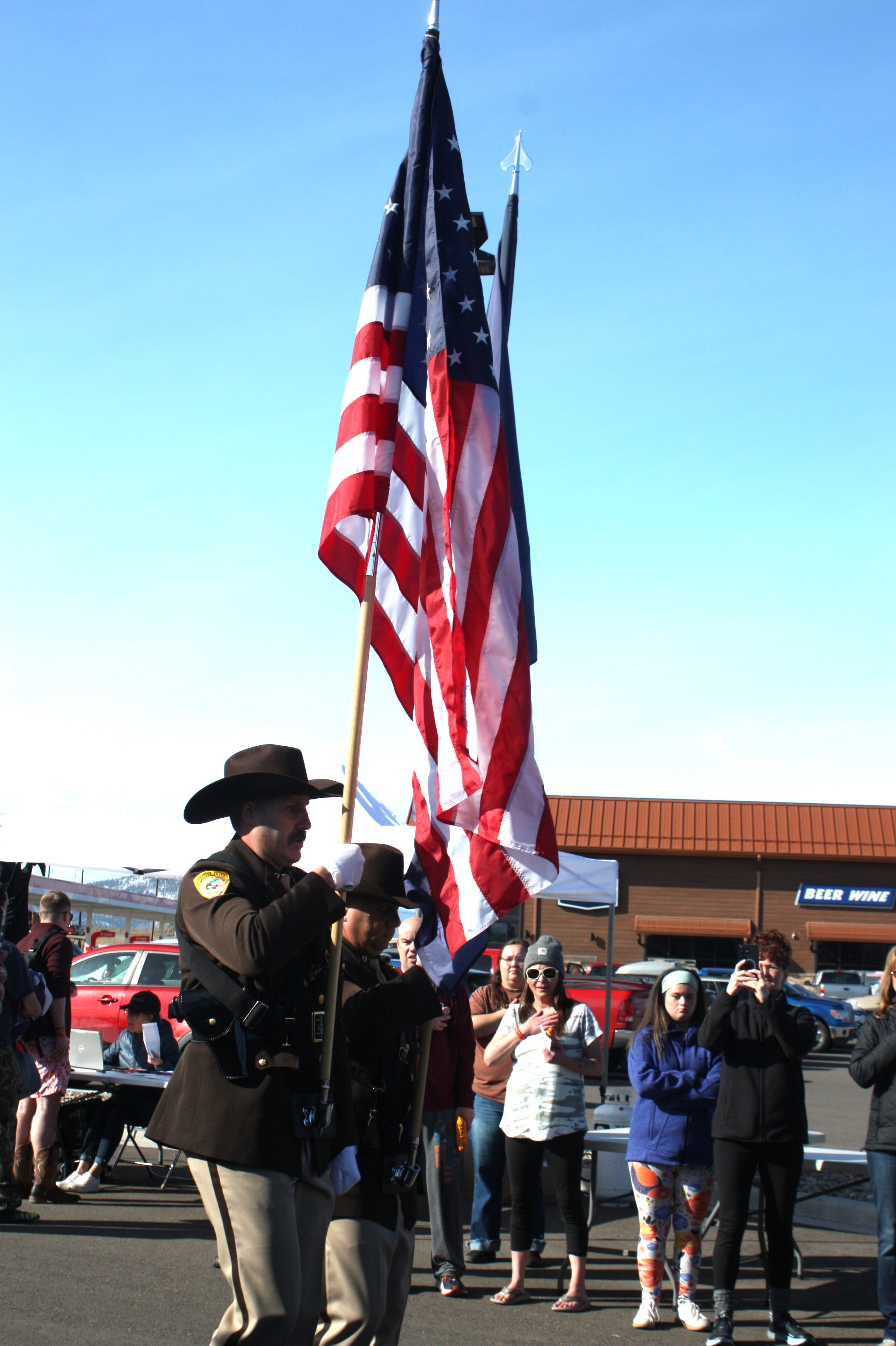 Image 3 Caption: Lewis & Clark County Sheriff's Office Honor Guard presents the flags.