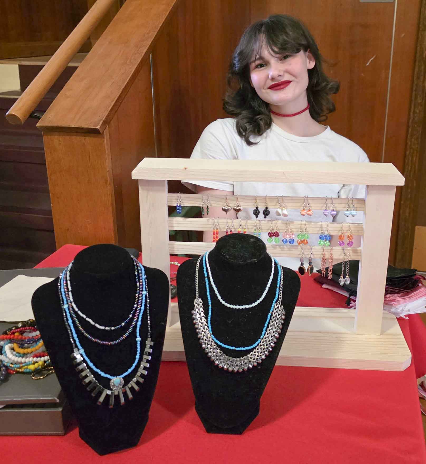 Image 2 Caption: Destiny Grandy displays her handmade jewelry, part of her entrepreneurship venture.