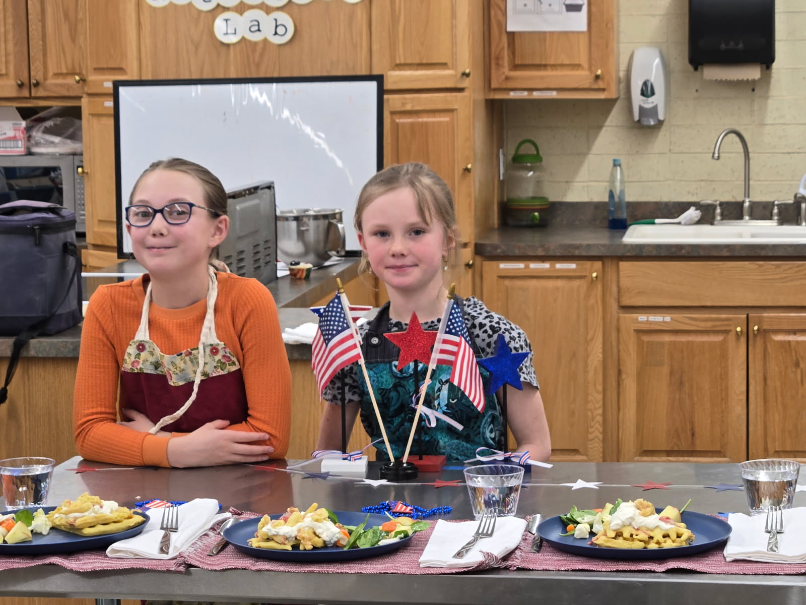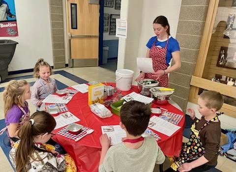 Image 2 Caption: Grace Christensen and Ella Kosto participate in the Hooked on Cooking Contest.